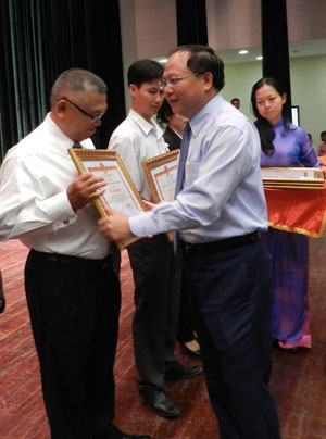 Phó chủ tịch UBND TP.HCM Tất Thành Cang tặng bằng khen cho các tập thể có thành tích tốt