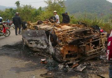 Xe 7 chỗ lật ngửa, cháy rụi trong đêm