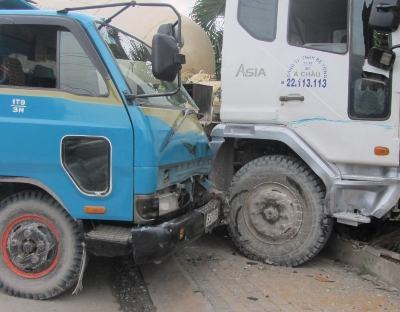 Sau va chạm giữa xe ben và xe bồn, một tài xế bị thượng nặng, được người dân đưa đi bệnh viện cấp cứu, hai xe hư hỏng phần đầu.