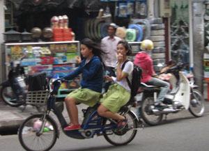 Học sinh Trường THPT Nguyễn Thị Diệu, TP.HCM đến trường bằng xe đạp điện