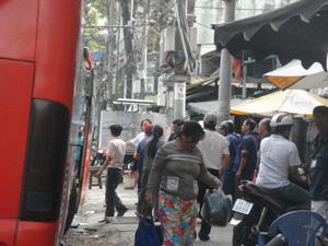 Cũng như thế, khu vực Suối Tiên cũng được “hô biến” thành bãi xe để chèo kéo khách. Cả một hàng dài xe khách nối đuôi nhau, hành khách cũng nối đuôi nhau, nghiễm nhiên coi đây là bến xe.