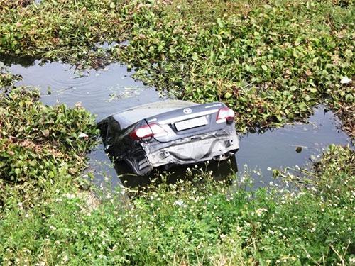 Sau khi bay qua đường sắt, chiếc ô tô đã “hạ cánh” xuống sông