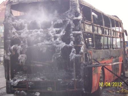 | Xe chở 30 hành khách đột nhiên bốc cháy, 30 người thoát chết.. |