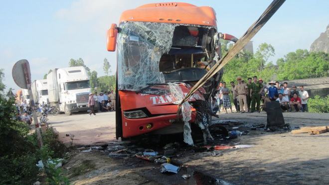 Xe khách bị hư hỏng nặng – Ảnh: Vùng Vịnh