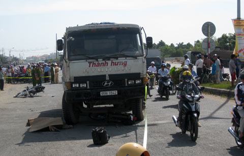 Tại hiện trường, chiếc xe tải sau khi gây tai nạn, không để lại vết thắng (phanh) bám trên mặt đường, 3 chiếc xe máy đều bị xe tải cán nát. Riêng chiếc xe Honda Cup 50 bị cán nát, nằm gọn dưới bánh trước xe tải.