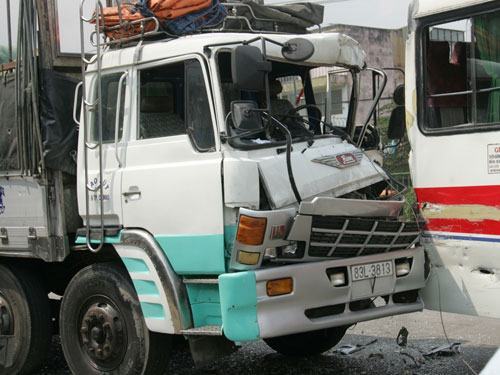 Đầu xe tải hư hỏng nặng sau vụ tai nạn
