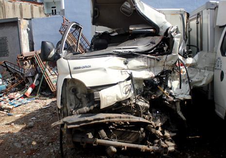 Thông tin ban đầu, vào thời điểm trên, xe tải mang BKS 57L-9368 do Nguyễn Hoài Hận (26 tuổi, quê Trà Vinh) điều khiển chở theo một máy xúc đất lưu thông trên đường Phan Văn Trị; khi đến trước nhà số 14 thì bất ngờ mất lái tông vào dải phân cách giữa đường.