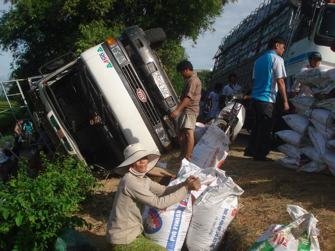 Trước đó, vào khoảng 2g sáng cùng ngày, chiếc xe tải nói trên (chưa rõ người điều khiển) chở hơn 20 tấn thức ăn hỗn hợp dành cho vịt đẻ, mang nhãn hiệu Green Feed, đang lưu thông trên Quốc lộ 19 theo hướng từ thị trấn Tuy Phước về TP.Qui Nhơn. Khi đến khu vực này bỗng nhiên xe lật nhào xuống bờ ruộng bên đường về phía bên phải theo chiều lưu thông. Rất may tài xế chỉ bị thương nhẹ, nhưng chiếc xe bị hư hỏng nặng phần đầu và toàn bộ hàng hóa trên xe văng tung tóe.