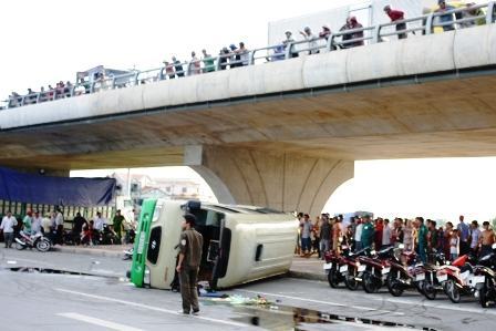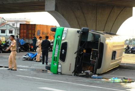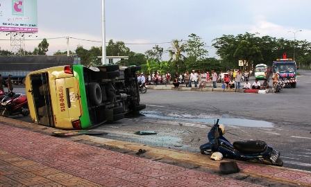 Tai nạn xảy ra vào lúc 16h chiều nay 9/5, ngay dưới gầm cầu vượt đường cao tốc Trung Lương, quốc lộ 1A, xã An Phú Tây, huyện Bình Chánh (TPHCM).