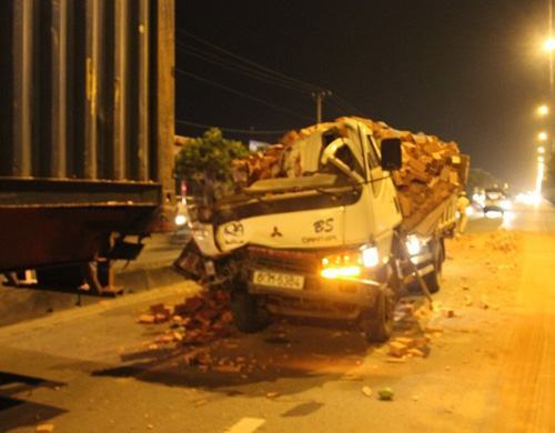 Xe tải va chạm container, 1 người chết, 2 người bị thương
