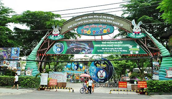 Tại CV Lê Thị Riêng, dù lãnh đạo Q.10 đã cho ngưng hoạt động của nhà hàng Ốc Đảo nhưng phần lớn diện tích CV vẫn được sử dụng cho thuê làm Sân khấu ca nhạc Hoàn Vũ, nhà sách, quầy dịch vụ ăn uống… Đặc biệt là Khu vui chơi Thỏ Trắng, trước đây vốn là đất CV cây xanh, nay biến thành một khu vui chơi có thu phí giá cao. Ban đầu khu vui chơi này có quy mô nhỏ để tạo sân chơi cho người dân và trẻ nhỏ nhưng nay đã bành trướng với hàng chục trò chơi từ dân gian đến cảm giác mạnh chiếm diện tích lớn. Và đương nhiên, phần cây xanh, thảm cỏ của CV dành cho người dân bị thu hẹp…