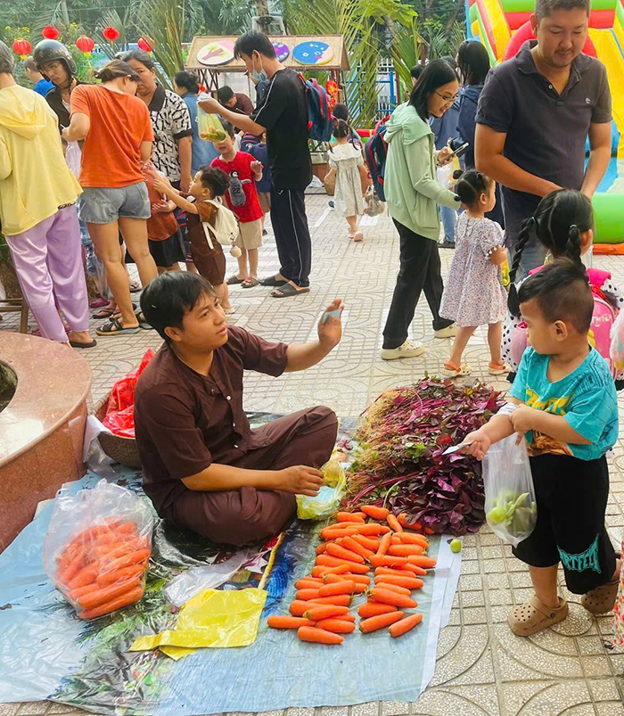 Trong khi đó, mừng Tết đến xuân về, Trường Mầm non 10A (Q.Tân Bình) đã tổ chức phiên chợ quê đặc biệt, tạo cơ hội cho học sinh được tham gia vào không khí Tết truyền thống và hiểu sâu sắc hơn về những giá trị văn hóa của dân tộc Việt Nam. Phiên chợ quê được thiết kế với nhiều gian hàng đầy màu sắc, tràn ngập sản vật nông thôn như rau, củ, quả và các món ăn đặc trưng của quê hương. Các trò chơi dân gian và khu vực đờn ca tài tử đã mang đến một không gian âm nhạc đậm đà bản sắc dân tộc, giúp các em cảm nhận sâu sắc về những truyền thống mà cha ông để lại. Điều đặc biệt là các em đã tham gia phiên chợ với những bộ trang phục bà ba giản dị nhưng đầy tự hào, như những “tiểu thương nhí” thực thụ. Cảnh tượng này không chỉ tái hiện lại một phần của làng quê Việt Nam xưa mà còn giúp các em cảm nhận được tình yêu và sự trân trọng đối với những giá trị giản dị mà thân thuộc của cuộc sống.