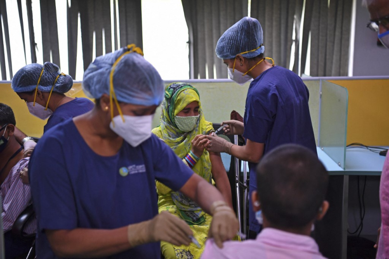 Tiêm chủng Covid-19 tại bang Maharashtra ở Ấn Độ. Ảnh: AFP